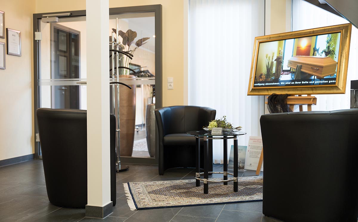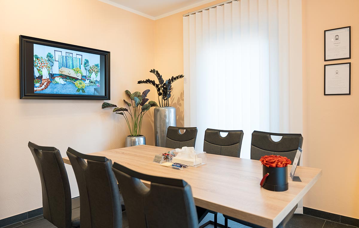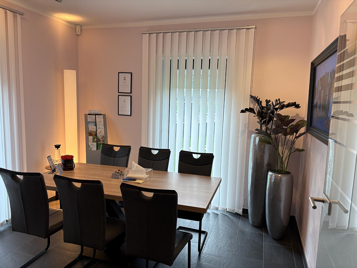 Die Beratungsräume sind diskret gelegen und ermöglichen vertrauliche Gespräche in einer ruhigen, ungestörten Umgebung. Hier nehmen wir uns Zeit für Ihre Fragen und Wünsche und begleiten Sie einfühlsam durch alle notwendigen Schritte.